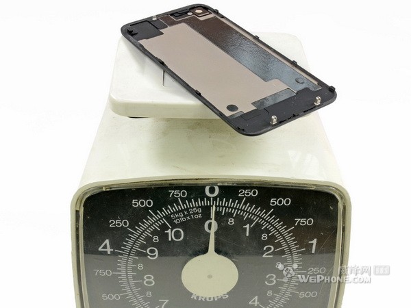 十九,雖然還有幾個零件沒拆,但是掂量了一下後背殼,還是能感覺到很輕。具體有多輕,我們用精確度很高的設備稱了一下,整個後背殼只不過比iPhone 4S的背面玻璃重那麼一點點。