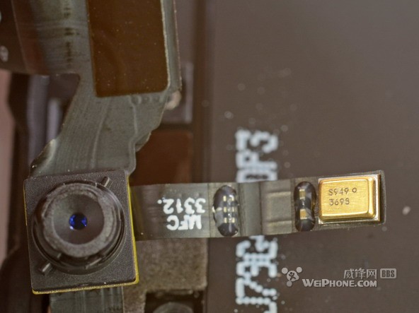 二十六,現在我們可以看到iPhone 5的麥克風了,蘋果為iPhone安裝了三個麥克風,其中正面頂部的麥克風據推測主要是用來服務於FaceTime和免提功能。