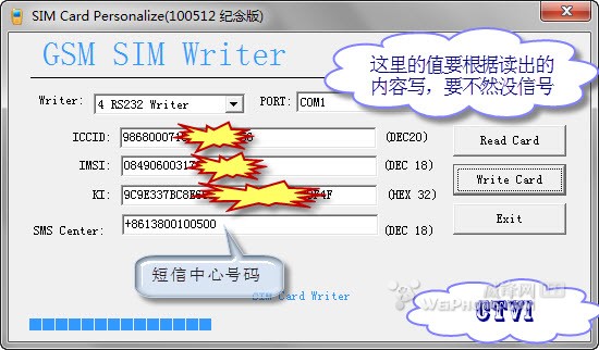 1、讀取GSM卡KI,IMSI,ICCID和短信中心,請看下面的教程