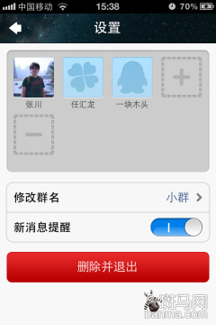 為了提高小群的私密性,該軟件還設置了一個"刪除並退出"的選項,只要你自動退出了該群,就不會再收到相關的信息,防止了你們的小秘密透露。