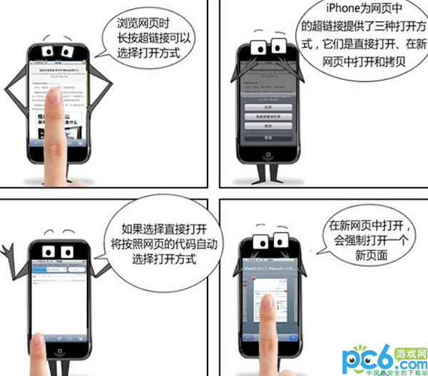 5、Safari浏覽器看網頁,按住鏈接會出選項選擇新窗口打開。