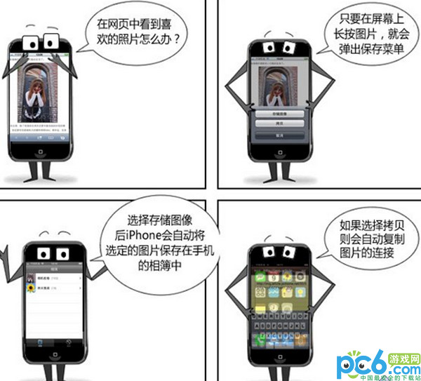 2、在網上看到了喜歡的圖片,尤其是可愛的MM,只要按住她幾秒iPhone4S就會彈出菜單詢問你是否將她保存在相簿中。