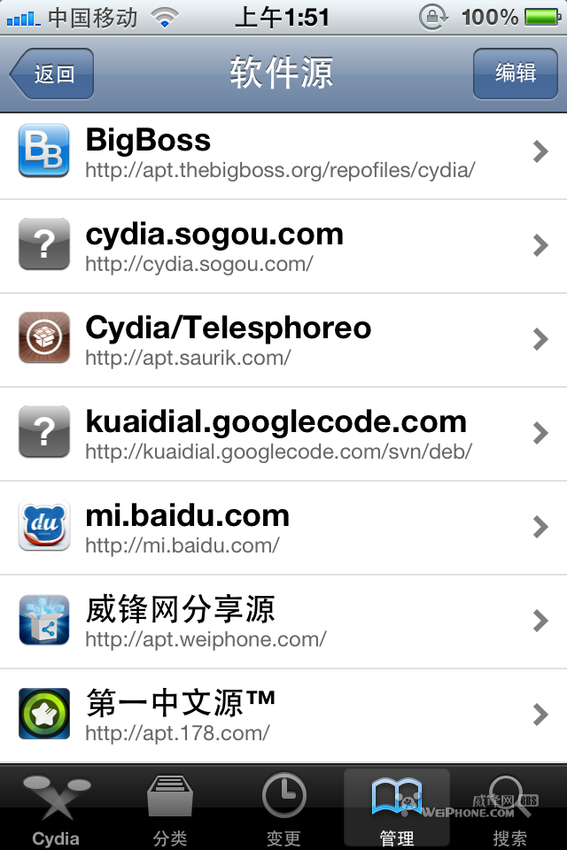 至於cydia,到var/lib/dpkg裡編輯status和status-old兩個文件,把提示你更新的軟件的version改成高於當前版本即可。如果還是不行,有可能是同一個軟件在不同源上的差異造成,把沒用的源都刪了吧。