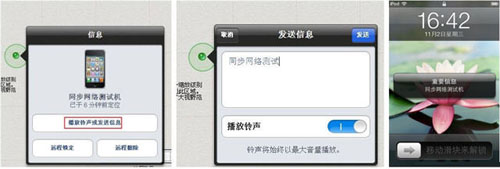 1、【播放聲音或發送信息】,這一個操作可以方便清楚的讓iPhone發出聲音,便於自己在家或者辦公室查找,如果是iPhone被盜了的話這個聲音也會引起別人的注意,以後如果你也聽到這種聲音的時候就要留神了,幫忙留意一下是誰在偷了另外一個用戶的iPhone,然後跟蹤並且報警,如果大家都可以這樣做,小偷就沒地方藏了。發送聲音的同時還可以輸入一些話語,這些話語是可以在iPhone上面顯示出來的。