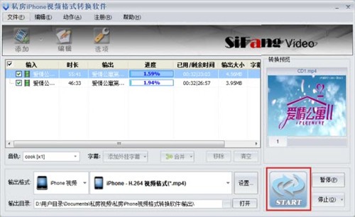 用iPhone看電影電視支持專用的H.264編碼的視頻格式,為了可以簡單方便的得到這種格式,一般來說使用iPhone視頻轉換器是最常用方式。私房iPhone視頻格式轉換軟件完全支持iPhone4S,iPhone4,iPhone3GS視頻格式,並且支持輸出高清視頻格式,功能全面可以把各種格式的視頻文件快速轉換成iPhone視頻格式文件,這樣就能存入iPhone手機中隨時隨地的流暢觀看了。下面我們可以簡單演示一下iPhone視頻轉換器的整個操作流程。