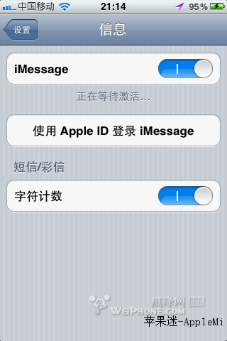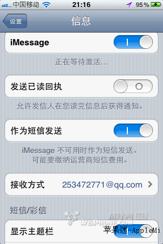 升級ios5完成後,打開設置-信息-開啟你的imessage