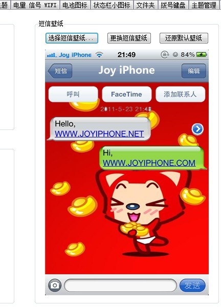 四、短信泡泡更換完畢後,可以看到旁邊有更換短信壁紙的一欄
