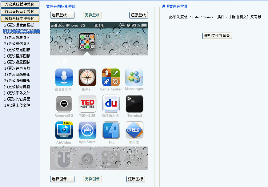 選擇替換系統文件美化,更改運營商圖標,