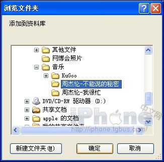 3.這裡為了舉例子,我點擊的是“將文件夾添加到資料庫”,在彈出的“浏覽文件夾”窗口中選擇了一個文件夾,點擊“確定”後iTunes將會自動將該文件夾下的所有音樂文件導入進iTunes的音樂資料庫中。