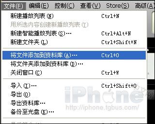 2.那麼請點擊iTunes菜單欄目中的“文件”,在彈出的下拉菜單中,可以看見“將文件添加到資料庫”和“將文件夾添加到資料庫”這兩個選項。