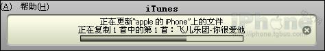 iTuns同步歌曲的速度還是比較快的,在同步完後,你就可以在iPhone中的iPod裡查看到剛才你傳輸好的音樂。