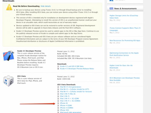 第七步:下載與你的設備所對應的測試版(如果是iPhone 4S,就是箭頭所指方向)