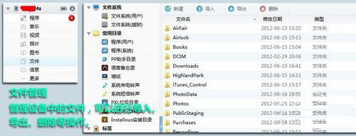 PP助手電腦版,可以直接對你的設備中的資源進行管理操作。將你的設備連接上電腦之後,通過PP助手電腦版可以對你的設備的文件進行操作,與電腦的文件管理類似,簡單的說,就像是一個U盤連上了電腦的操作,簡單方便。