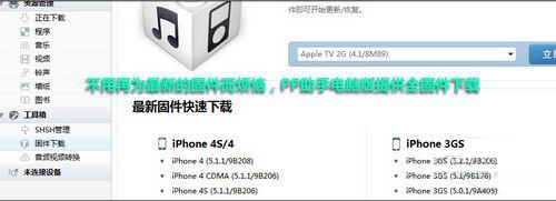 PP助手電腦版集成了IOS所有產品的最新固件,在這裡可以輕松下載到最新的固件,無需再到處百度尋找新的固件,無需再為了沒找到固件而煩惱,讓你輕松刷機沒煩惱。