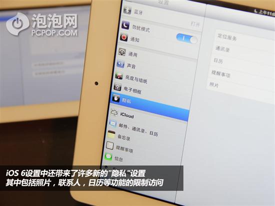 iOS 6隱私設置可設置訪問限制。