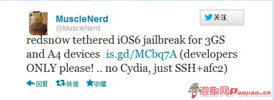 再次說明,iOS6不完美越獄教程完成後,Cydia是無法使用的,因為目前的iOS6已經發生變化,而這個變化似乎還在處理中,所以你只能用SSH或afc2的辦法進行操作,肌肉男也在推特中之處,這個iOS6不完美越獄教程只適合開發者版本的iOS6固件。