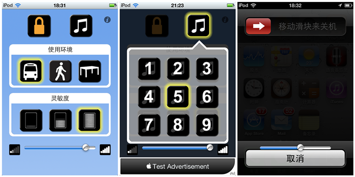 2、警報響起後,除了插入耳機外,斜劃屏幕也能解除警報,這點設計比較失敗,小偷很在得手後會有極大的可能接觸屏幕,以致警報解除。