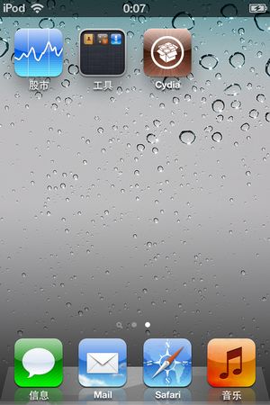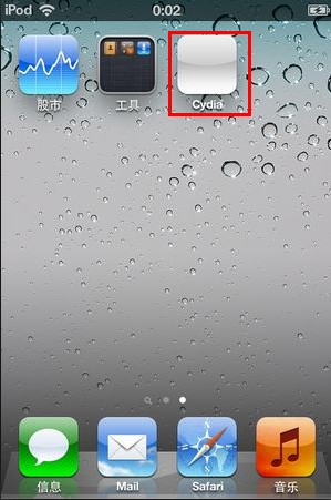 此時cydia的圖標為白色的,需要用紅需引導一次(每次設備關機後,越獄狀態消失,都得按以下方法引導)