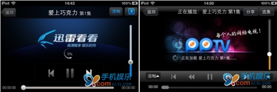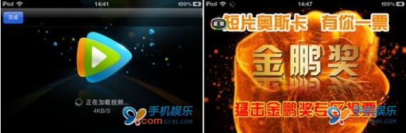 PPS影音:視頻加載速度:16秒(PPS在手機客戶端上插播了15秒的廣告)