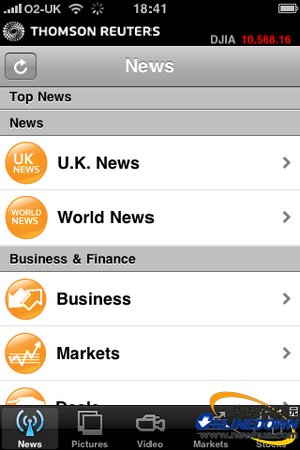 在許多的新聞應用程序中,Thomson Reuters News覆蓋的廣度更大。Preferences可以幫助您定制喜愛的新聞資訊。工具欄提供快速訪問新聞、圖片、視頻和股票市場的覆蓋面的功能。