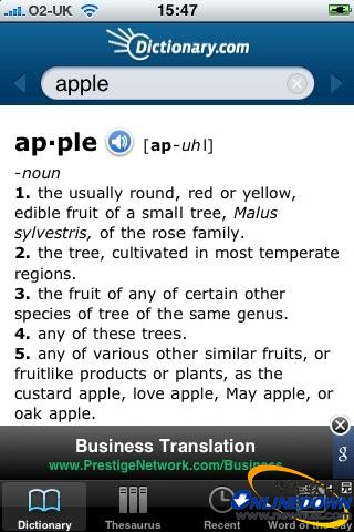 Dictionary & Thesaurus是一款具有100條注解和9萬多個同義詞的專業字典和詞典。這款軟件查詢速度很快,而且提供單詞真人發音,其界面與iPhone非常搭配。