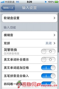 點評:這三款輸入法在質量上各有差異,但是都在可容忍的范圍內,最高的是QQ手機輸入法,到達6.2M,對於iPhone軟件來說,已經算是較小的質量。而搜狗更是精簡到2.9M。自帶輸入法自然不用這個環節,接下來就看看設置界面,這個也是大家非常關注的一個焦點內容。