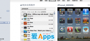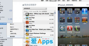 4。確定在itunes的應用程序界面可以看到你想要保留的軟件。(注:此處的預覽界面即是同步後的iphone界面,所以,如果你發現此處的預覽是錯誤的或混亂的界面時,務必果斷取消同步或拔線,以免釀成憾事。題外話:此事多發於在新電腦同步的狀況,比如,公司同步完機器之後,你到家中時,可以先“傳輸購買軟件”到電腦,然後勾選“應用程序”,點同步,此時,電腦上的預覽多半是混亂無序的狀態,此時,在同步開始的一瞬間,果斷取消同步,待itunes反應過來之後,你就發現電腦上的預覽界面已經恢復正常啦。)