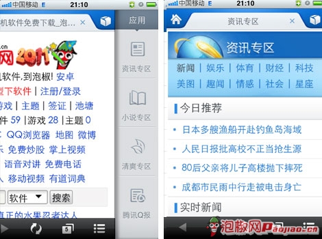 【QQ浏覽器】-附帶資訊專區、小說專區、清爽專區以及騰訊Q報,讓用戶有看不完的資源內容