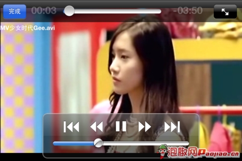 OPlayer:播放界面上,OPlayer很簡單,一個完成按鈕返回上一級、上一曲、下一曲、播放暫停。雙擊屏幕可以放大屏幕。相對比起AVPlayer來說,可以說是小巫見大巫。