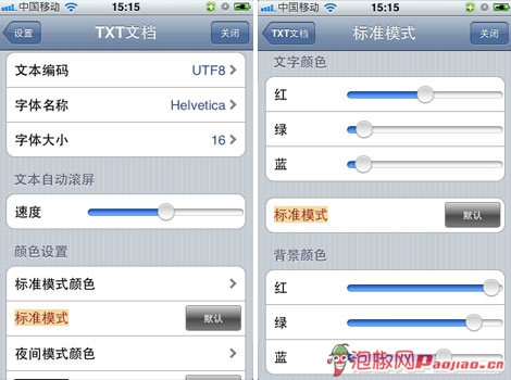 GoodReader-文檔設置頁面、文字背景顏色變換頁面