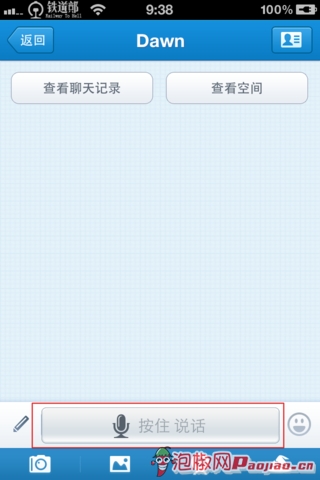 ▲iPhoneQQ語音對講開始界面【按住上圖紅框後可以進行語音】
