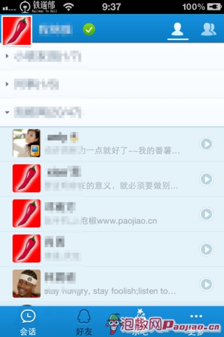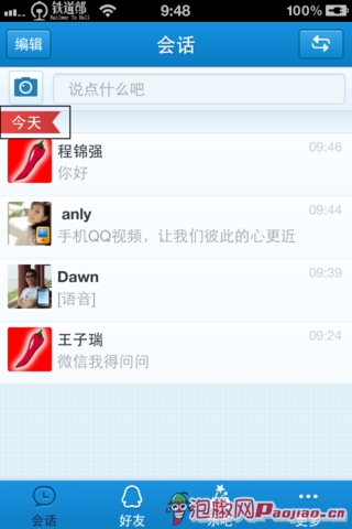 我們可以如何群聊?很多人會有這個疑問,同時對於這個話題,很多人會覺得不可思議,“手機怎麼能群聊呢”,“我不相信它可以群聊?”等等。不管你信不信,反正我是信了。QQ推出語音聊天的時候,似乎更想讓它成為一個多方交流的工具(推出樂吧),這樣也符合目前交互式的聊天方法。我們先來看看主界面: