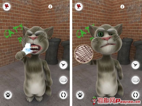 會說話的湯姆貓從推出到至今,一直霸占著iPhone最受歡迎游戲排行榜的前十位。可見眾多iPhone游戲玩家對於這只可憐又可愛的小貓咪的喜愛。湯姆貓可以在玩家觸摸時作出反應,並且用滑稽的聲音完整地復述您說的話。您可以撫摸他,用手指戳他,用拳輕打他,或捉他的尾巴。
