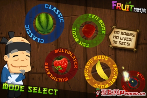 iPhone平台上一個非常刺激好玩,且非常容易上手、教人難以離手的動作游戲--《水果忍者》:將你的手指掃過屏幕,就能像忍者戰士般痛快地切開濺出美味果汁的水果。但注意不要觸碰混雜其中的炸彈,一旦引發爆炸,你的刺激冒險便會瞬間終結!攻破成就目標,透過OpenFeint平台以最高分挑戰世界高分榜的王座,並從師傅處學習有趣的水果知識。