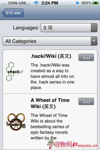 維基百科支持多種分類,最大分類就是全部維基百科,我們可以細分到體育、蘋果、財經等等,我們來看看設置界面: