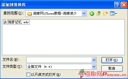 2. 找到你想要添加的音樂文件,iTunes支持常見的音樂格式,不過為了保證音質和兼容,大家最好選擇高品質的MP3格式的音樂文件,凌少選擇的是陳小春的《獨家記憶》,想必各位椒友都非常熟悉吧,一首非常好聽的歌曲。(iPhone怎麼設置鈴聲, iPhone鈴聲設置泡椒網獨家教程)