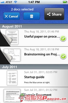 看名字很多朋友應該已經猜到這個小東西的作用了。它可以把你的iPhone變成掃描儀,這款軟件將通過攝像頭將文件、表格、白板、雜志等合成一個PDF文檔保存在GoogleDocs、Evernote或者Dropbox中。