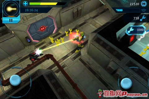 這是一款操作簡單又爽快好玩的設計游戲,不像一般的射擊游戲那樣需要雙搖桿來操作,玩家只需要用手指點擊空白之處讓主角前行、劃過敵人射擊,從這點看倒是有點像魔獸的操控。游戲非常爽快,不僅有多種武器選擇切換、還能夠呼叫空中援助,對指定地點狂轟濫炸,推薦之。