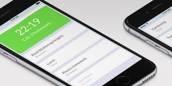 這是一個名為《Time》的 App ,該 App 會敦促你將待辦事項添加到列表裡,而 App 會為列表裡的每個任務設置一個計時器,我們可以點擊一個項目啟動時鐘,它會開始倒計時,隨著彩色液體的背景,讓你知道一看你今天還有多少沒有完成的任務。