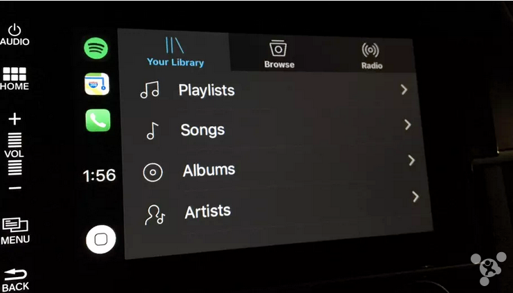 不過使用這種設計也有不好的一點,假設你在查看地圖,同時想控制音樂播放。這時候你就得先按下Home鍵,回到主頁面之後,找到歌曲播放應用。這樣的操作流程對於 iOS 設備用戶來說幾乎是每天都有的,但是對於 CarPlay 用戶來說,這就意味著他們得把更多時間放在觸控屏上,而不是觀察道路行車情況。如果用戶不確定 CarPlay 音樂播放圖標在哪裡的話,那這種應用切換的操作需要的時間就更長。