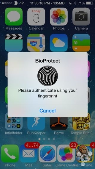 值得一提的是,BioProtect 最出色的部分在於用戶可以使用 Touch ID 進行身份驗證。而對於 iPhone 5 等沒配有 Touch ID 的機型,用戶也可以使用密碼來完成同樣的操作。