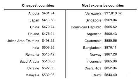 另外,這份榜單的價格也受到了稅率和通貨膨脹的“巨大影響”,怎麼看出來?不信的話,你看看委內瑞拉的價格就知道了。