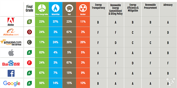 綠色和平組織表示,蘋果和谷歌在可再生能源供應方面的表現非常出色,這兩家公司都在通過他們的影響力來推動政府以及供應商更加注重可再生能源這方面的業務。