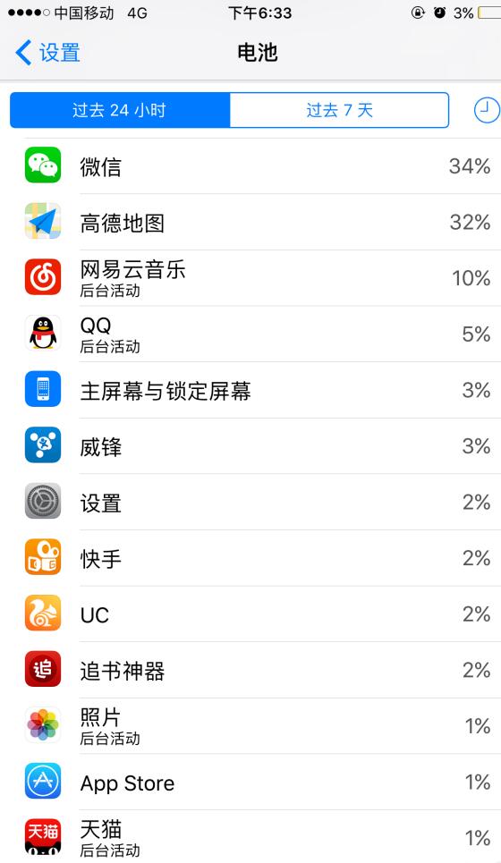 另外,該網友還分享了自己的 iPhone 6 在 iOS 10.2 系統下的電池使用情況。他表示,從早上 8 點到下午 5 點 30 分,他的 iPhone 6 電量從 100% 降低至 10%,並開啟低電量模式。最後 3% 的電量的待機時間為 30 分鐘左右。