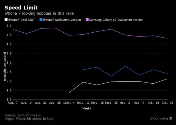 蘋果iPhone7 Verizon和Sprint版使用了高通的基帶,而AT&T/T-Mobile使用了來自Intel的基帶,近日彭博社發文稱,蘋果似乎故意限制了高通基帶的性能,以此來匹配Intel基帶的性能。