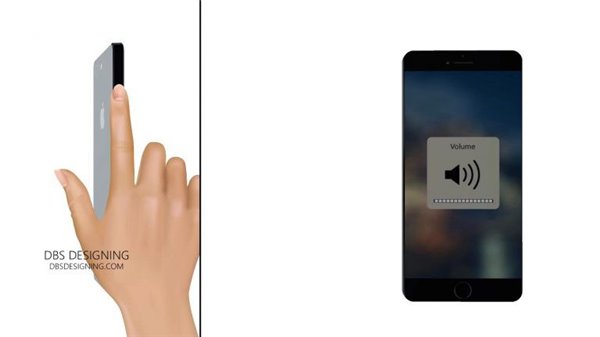 此外,設計師在手機原來音量鍵的位置加入了觸摸區域,並支持滑動手勢,通過向上向下滑動就可以調整設備的音量。