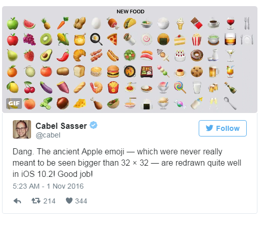 蘋果在當地時間周二發布了iOS 10.2測試版本,iOS 10.2測試版帶來了一些全新及重新設計的emoji表情,令一些原本抽象化的物體看起來“更加真實”。