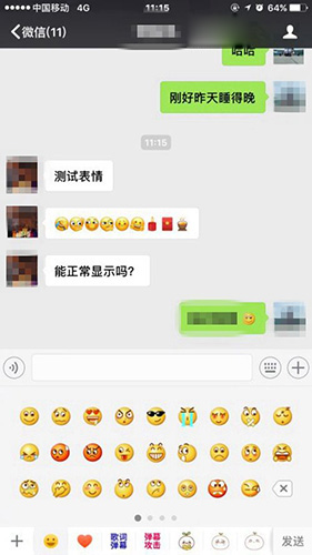 通過測試,目前iOS對iOS發送沒有問題,而iOS對安卓端發送則不會正常顯示,而是顯示表情文字。