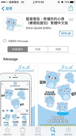 現在,台灣網友爆料稱,蘋果社交軟件iMessage中已經上架了“香菇藍瘦”表情包,售價30新台幣,約合6.2元人民幣。