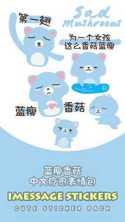 這套“香菇藍瘦”表情包的主題形象是一只藍色的香菇狀小熊,紅紅的臉頰、豐富的眼神搭配原視頻中有口音語句,看起來超治愈。